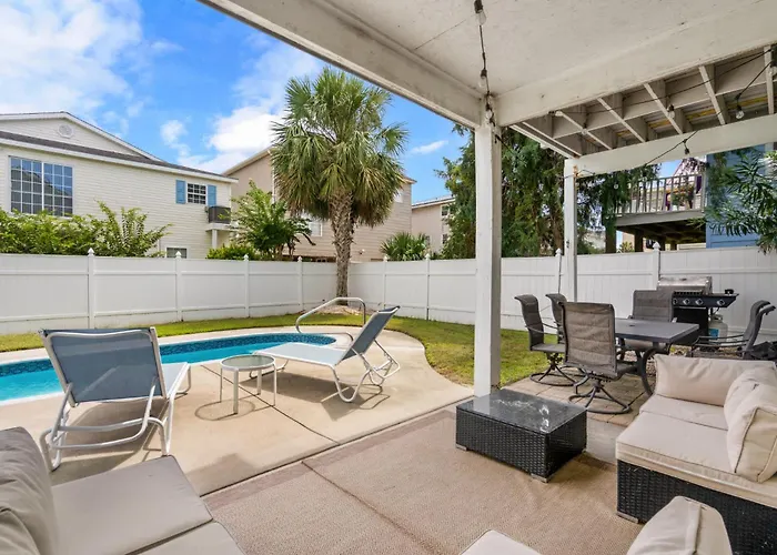 Beach House With Pool - North Myrtle Beach Villa is located within 5 minutes' walk of North Ocean Boulevard and entices guests with an aqua park, a golf course, and a garden. The 2-bedroom villa features opportunities for water sports activities, cycling, and fishing in the area, approximately 10 minutes' drive from Surfwood Shopping Center.